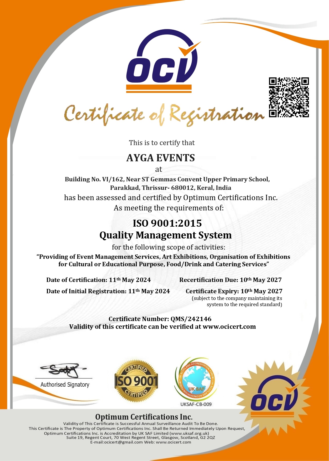 AYGA Events is a premier wedding planning and event management company in Kerala, Our head office is in Thrissur and branch offices in Alappuzha and Kochi. Originally established in 2010 as AYGA Decorators & Events, we evolved and rebranded in 2018 as AYGA Events and Decor to better reflect our expanded range of services. In 2024, we further refined our brand to AYGA Events, marking our commitment to excellence in the industry.
